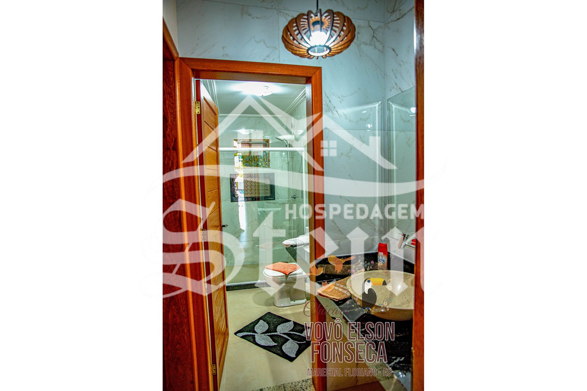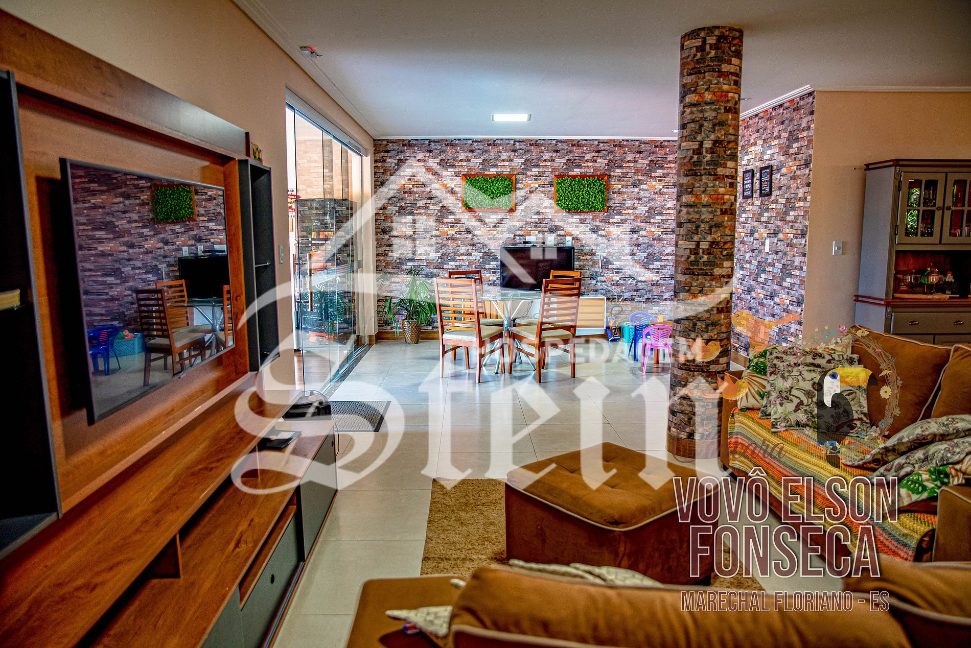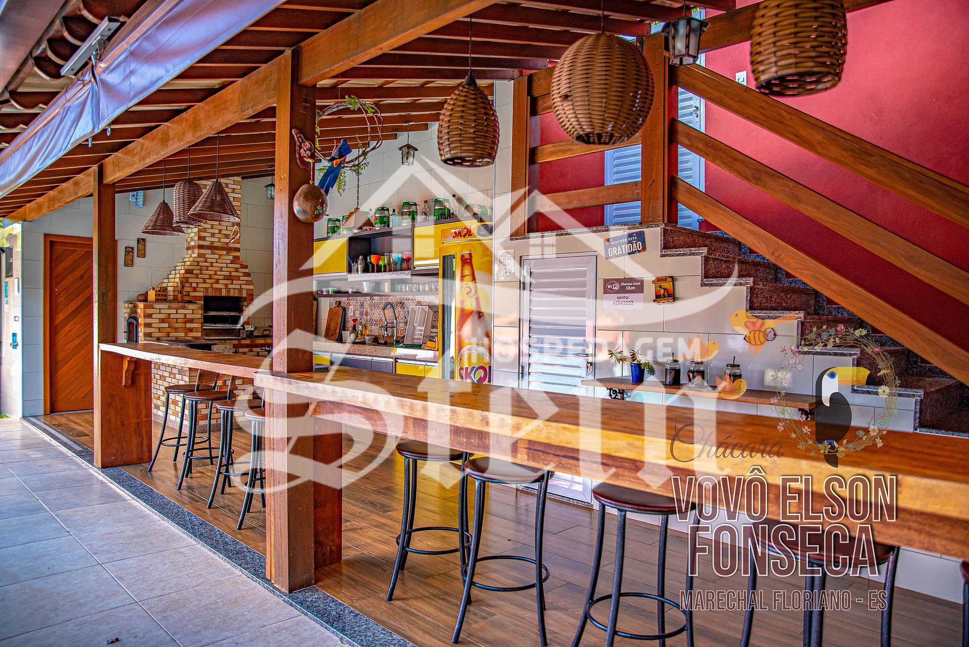 Localizado somente 3 quilômetros do centro de Marechal Floriano, a Chácara Vovô Elson Fonseca possui uma área de 1.900 m², com casa duplex composta de: