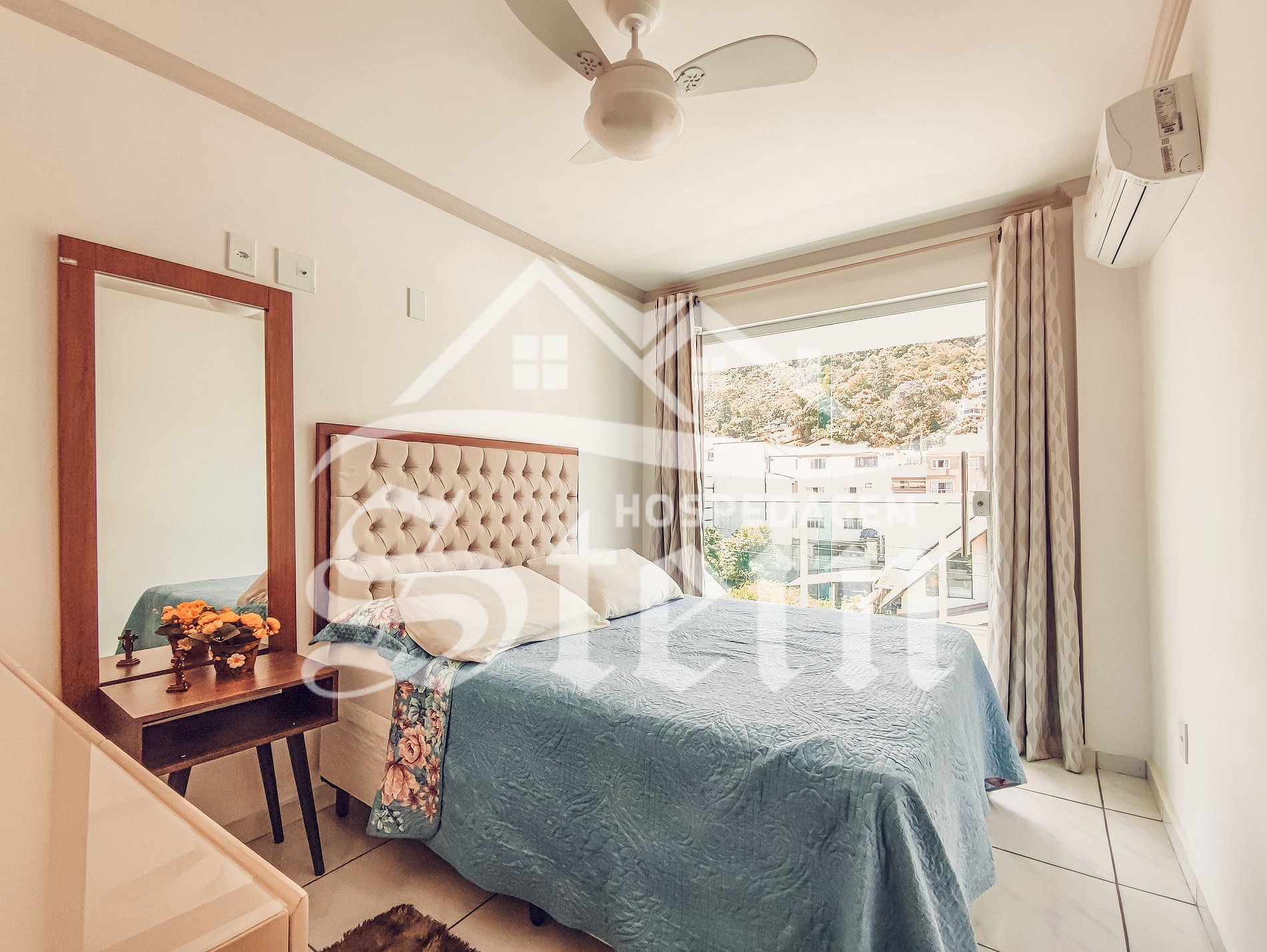 Situado no segundo andar, nosso apartamento apresenta um design moderno e aconchegante. Composto por dois quartos, ambos equipados com ar-condicionado e ventilador, proporcionamos o máximo de conforto durante sua estadia. Além disso, o apartamento inclui um banheiro, uma acolhedora sala de estar, uma cozinha totalmente equipada e duas varandas com vistas panorâmicas para a cidade. Para sua comodidade, também disponibilizamos uma vaga de garagem exclusiva.